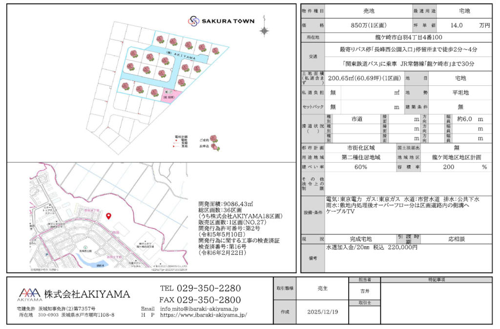 ●敷地面積/200.65㎡(60.69坪)(1区画)